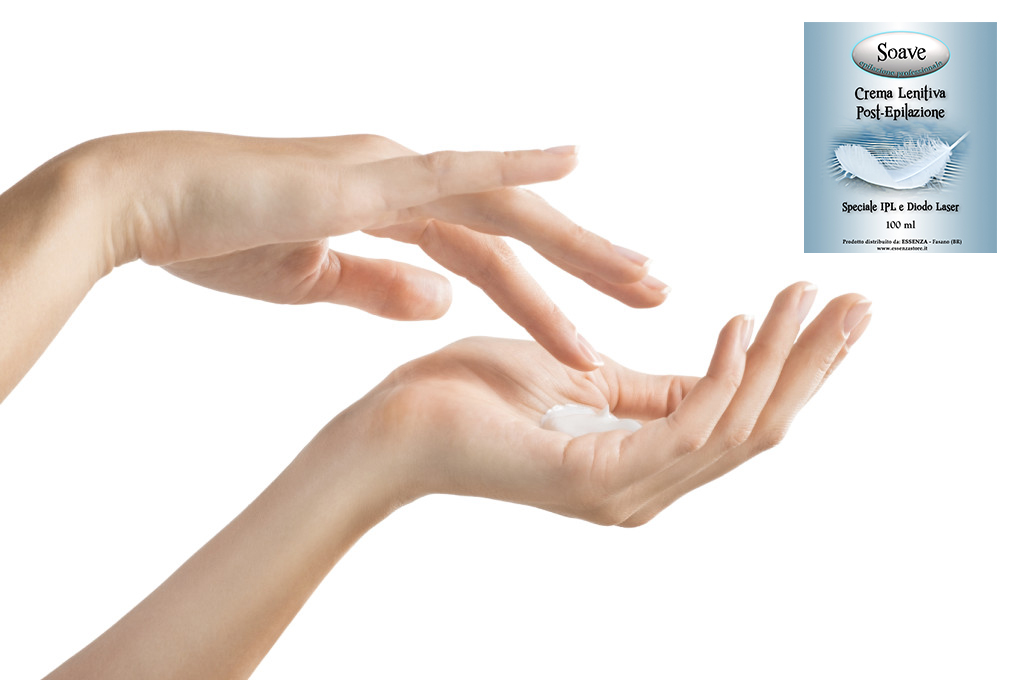 Crema Lenitiva post-depilazione SOAVE speciale IPL e Diodo Laser ritardante della ricrescita del pelo e SPF fattore di protezione solare, una crema lenitiva per il viso e per il corpo, che deve essere applicato dopo ogni trattamento di depilazione, indicato dopo e Diodo Laser.