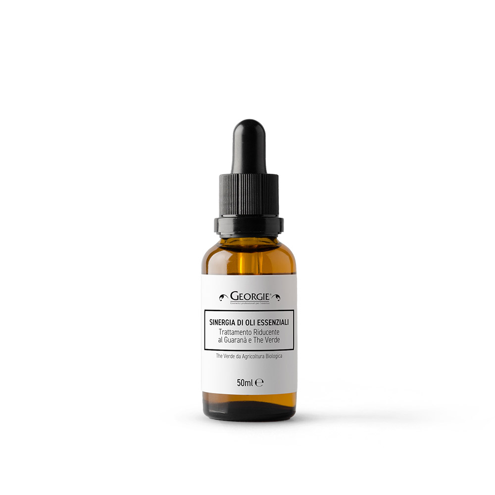 Georgie Sinergia per Trattamento Riducente al Guarana e The Verde 50 ml miscela di oli essenziali veicolati da un olio dermoaffine dal tocco secco, coadiuvante il trattamento professionale.