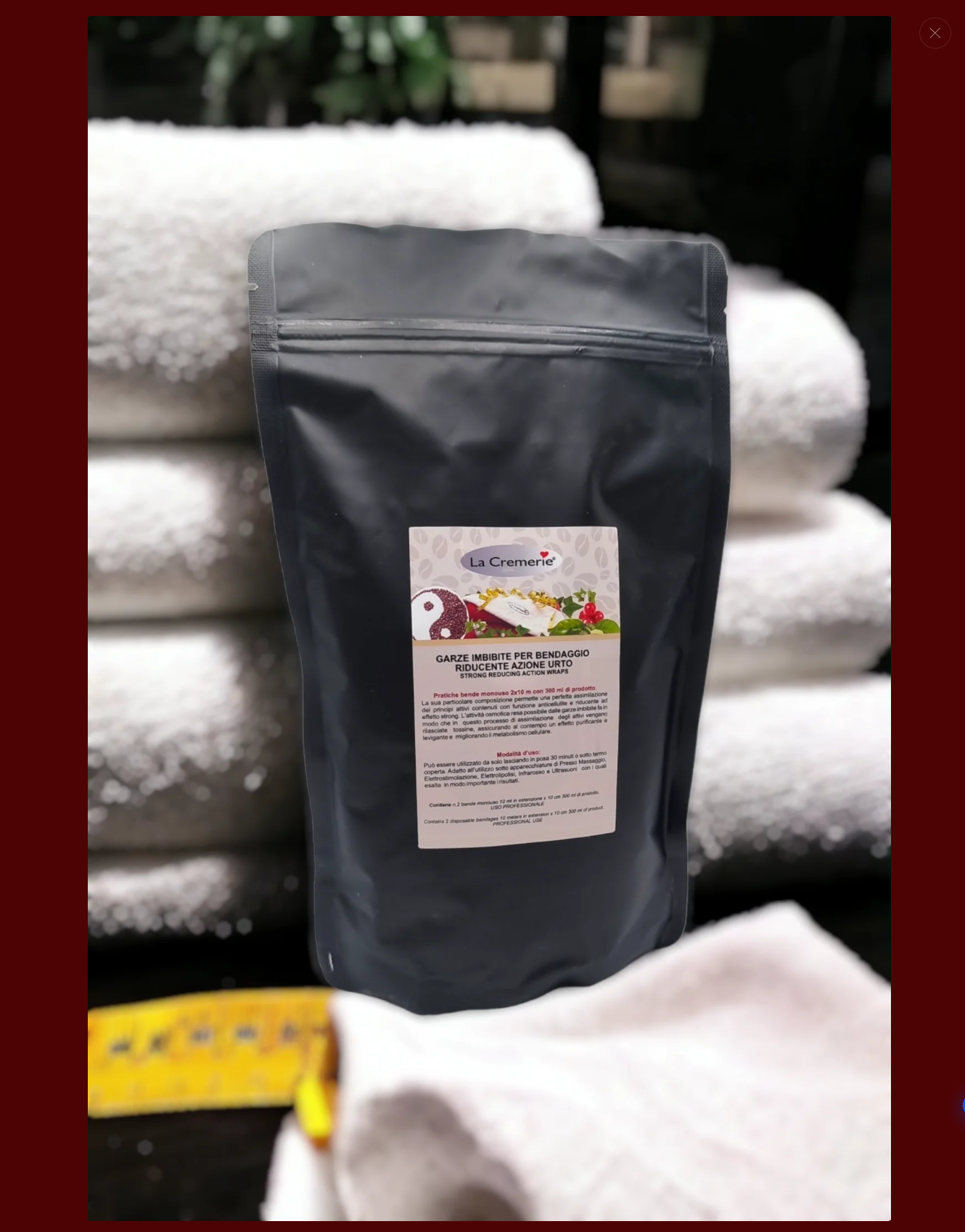 Bendaggio pronto con 2 garze da 10 mt cadauna, imbibite in 300 ml di prodotto, pronte all’uso per trattamento anticellulite ad azione urto .