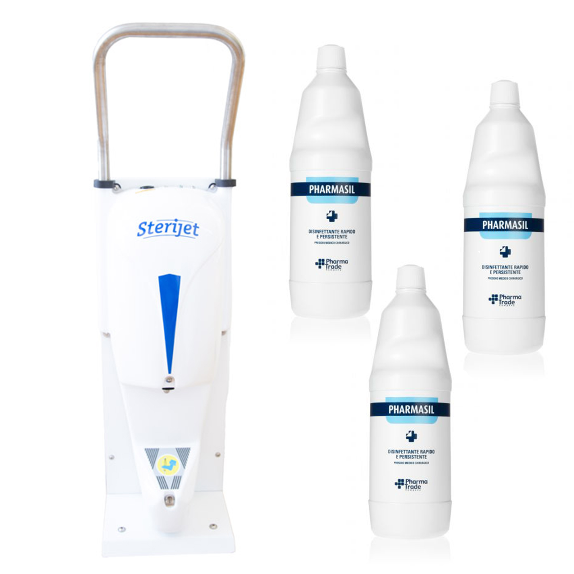 - DISINFETTANTE CERTIFICATO : In dotazione viene fornito PHARMASIL, uno speciale disinfettante Presidio Medico Chirurgico efficace su piedi calzati e cute integra.