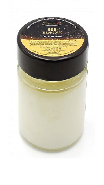 Scrub a base di sale costituito da una sinergia di estratto di fieno greco, pepe rosa, allantonina ed edera questo scrub è formulato anche per aiutare nella specifica azione rassodante, lascia sulla pelle uno splendido effetto setoso ed una raffinata fragranza OUD.