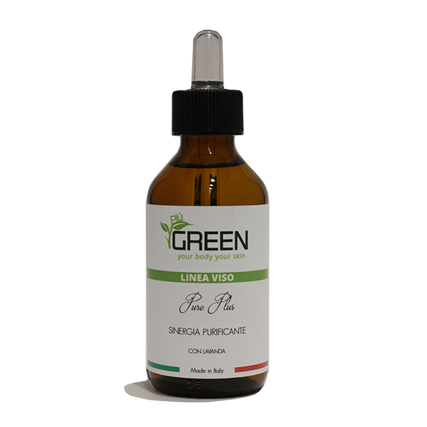 • Siero Sinergia Liquido PIÙ GREEN Purificante per la pelle da 100 ml per trattamento viso e epidermide.