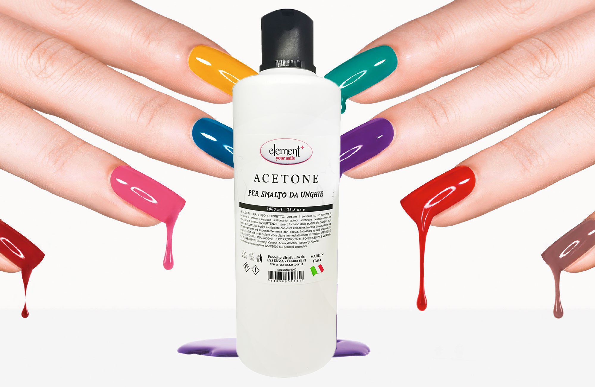 Questo permette di ottenere un ottimo risparmio oltre che a ridurre i rifiuti da smaltire. La sua formulazione permette una rapida rimozione dello smalto , grazie al suo contenuto di acetone in alta concentrazione. Gli standard qualitativi dei prodotti Element e la versatilità di tutta la gamma, sono tali da poter offrire anche ai privati dei prodotti di facile utilizzo anche a casa, per i lavori Fai da Te .